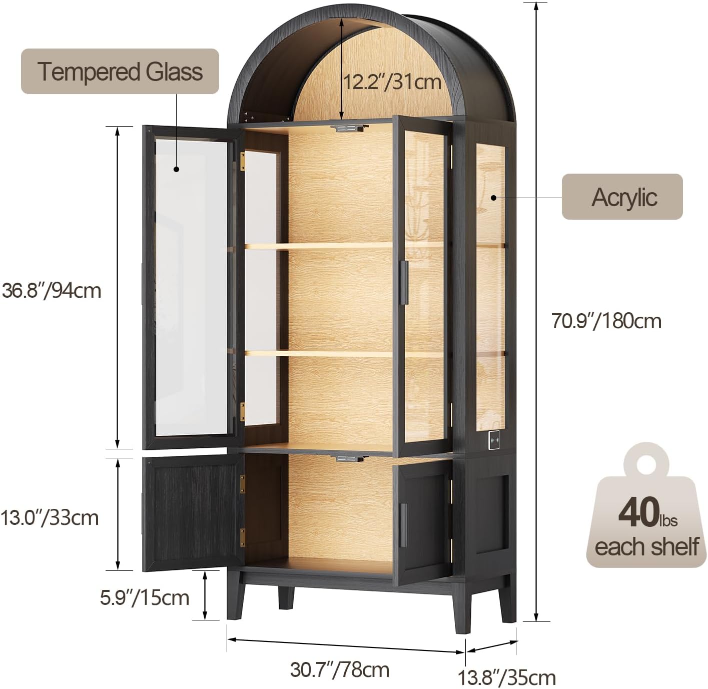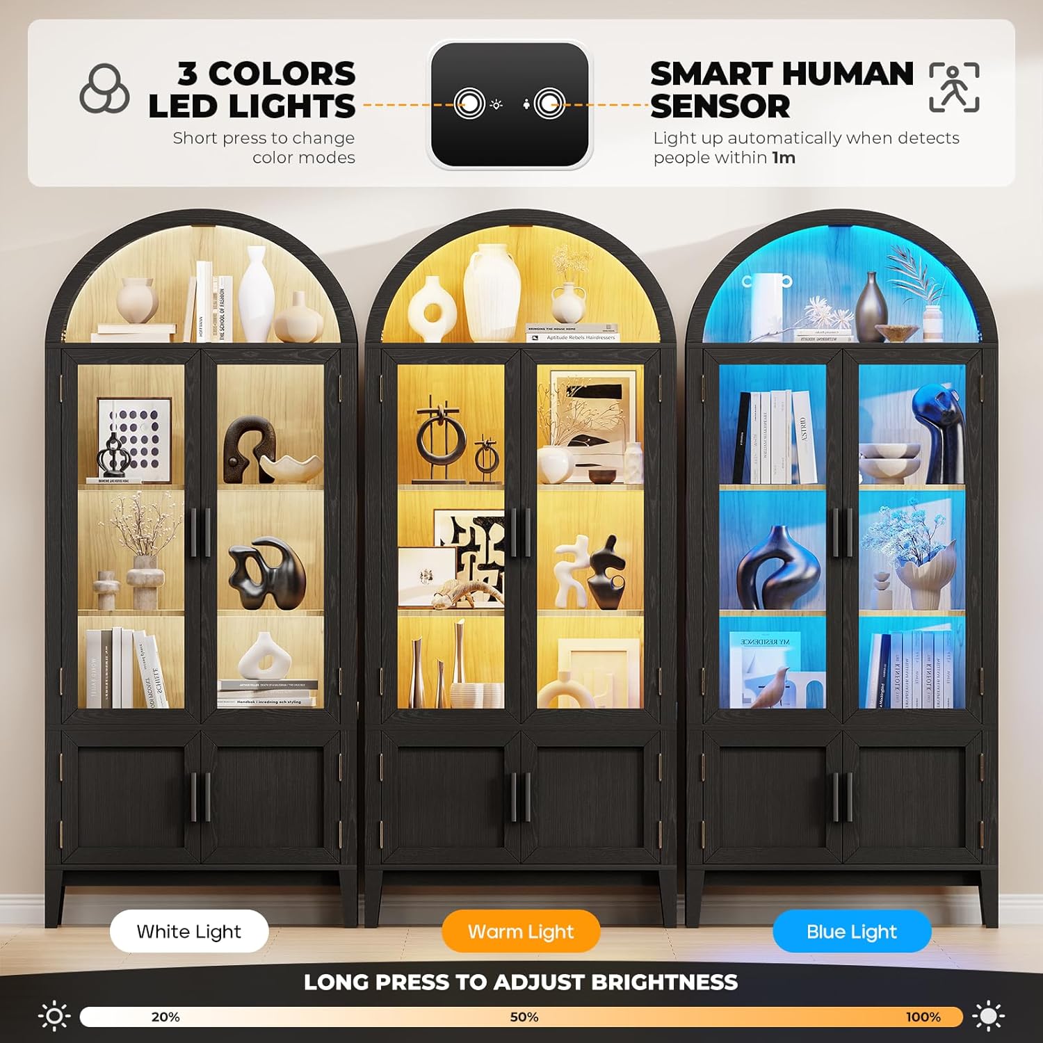 BROTTAR Arched Kitchen Pantry Cabinet with Glass Doors