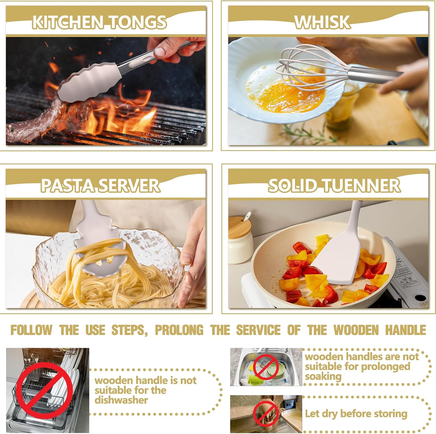 Each cooking utensil is made entirely of food-grade silicone, BPA-free and odorless